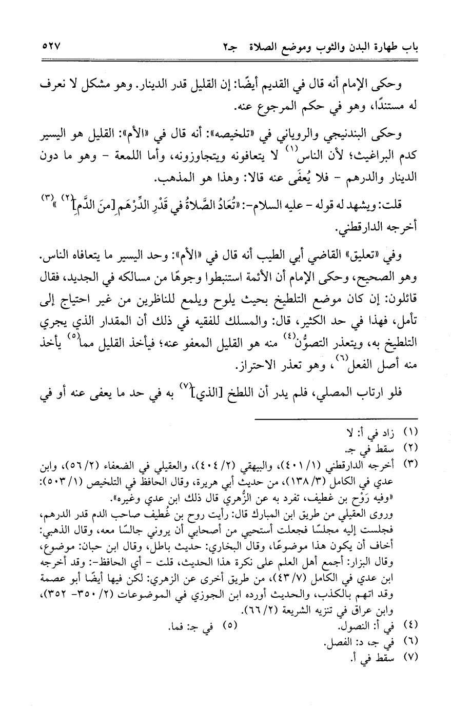 قلت: ويشهد له قوله- عليه السلام-: "تُعَادُ الصَّلاةُ فِي قَدْرِ الدِّرْهَمِ [مَن الدَّمِ] " أخرجه الدارقطني.