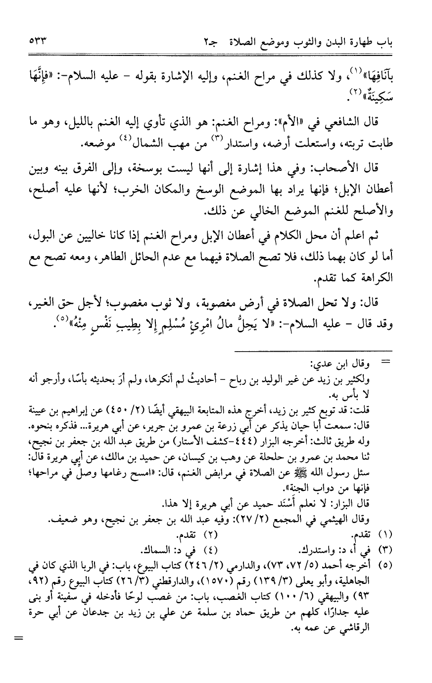 ثم اعلم أن محل الكلام في أعطان الإبل ومراح الغنم إذا كانا خاليين عن البول، أما لو كان بهما ذلك، فلا تصح الصلاة فيهما مع عدم الحائل الطاهر، ومعه تصح مع الكراهة كما تقدم.