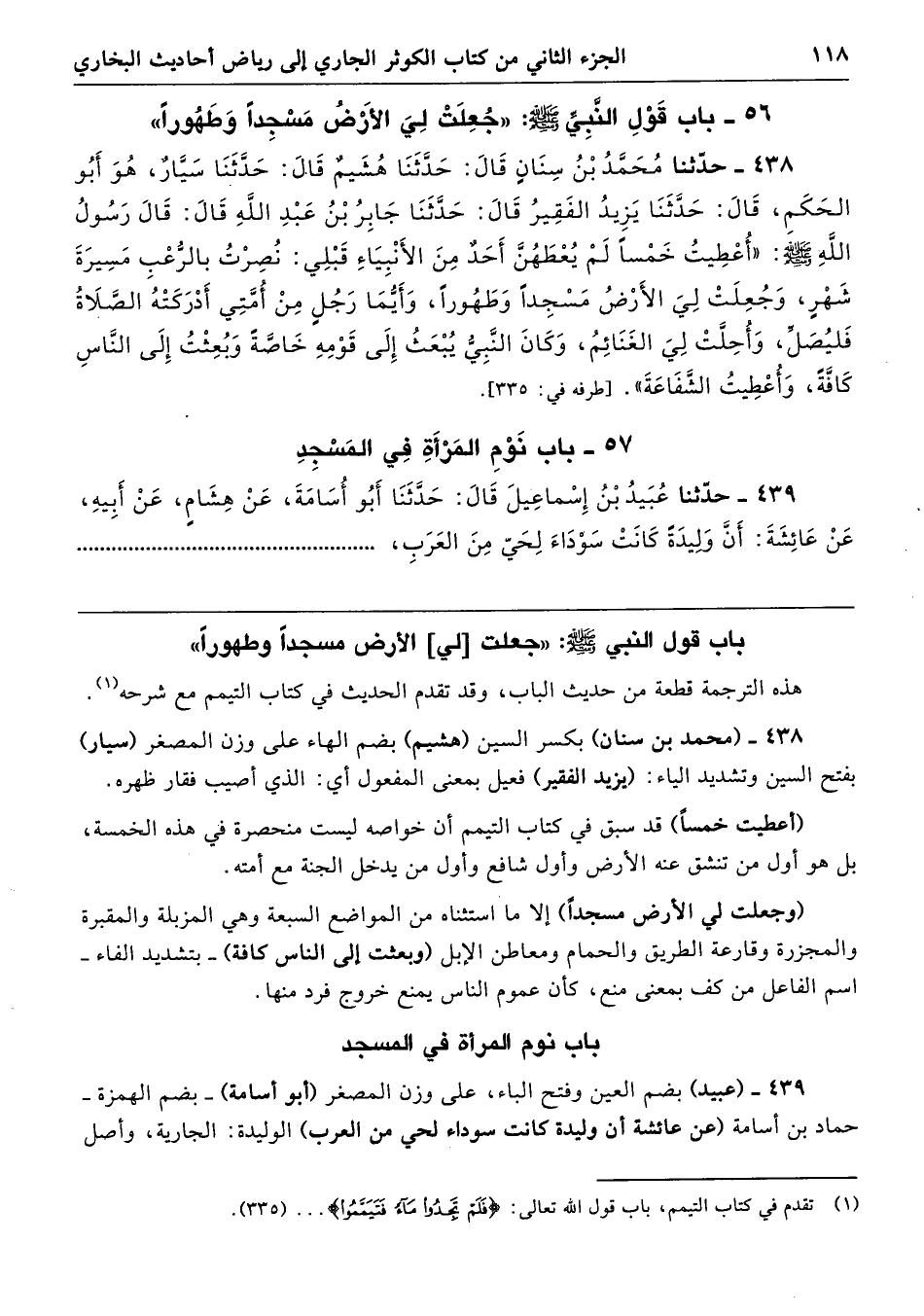 438 - (محمد بن سنان) بكسر السين (هشيم) بضم الهاء على وزن المصغر (سيار) بفتح السين وتشديد الياء: (يزيد الفقير) فعيل بمعنى المفعول أي: الذي أصيب فقار ظهره.