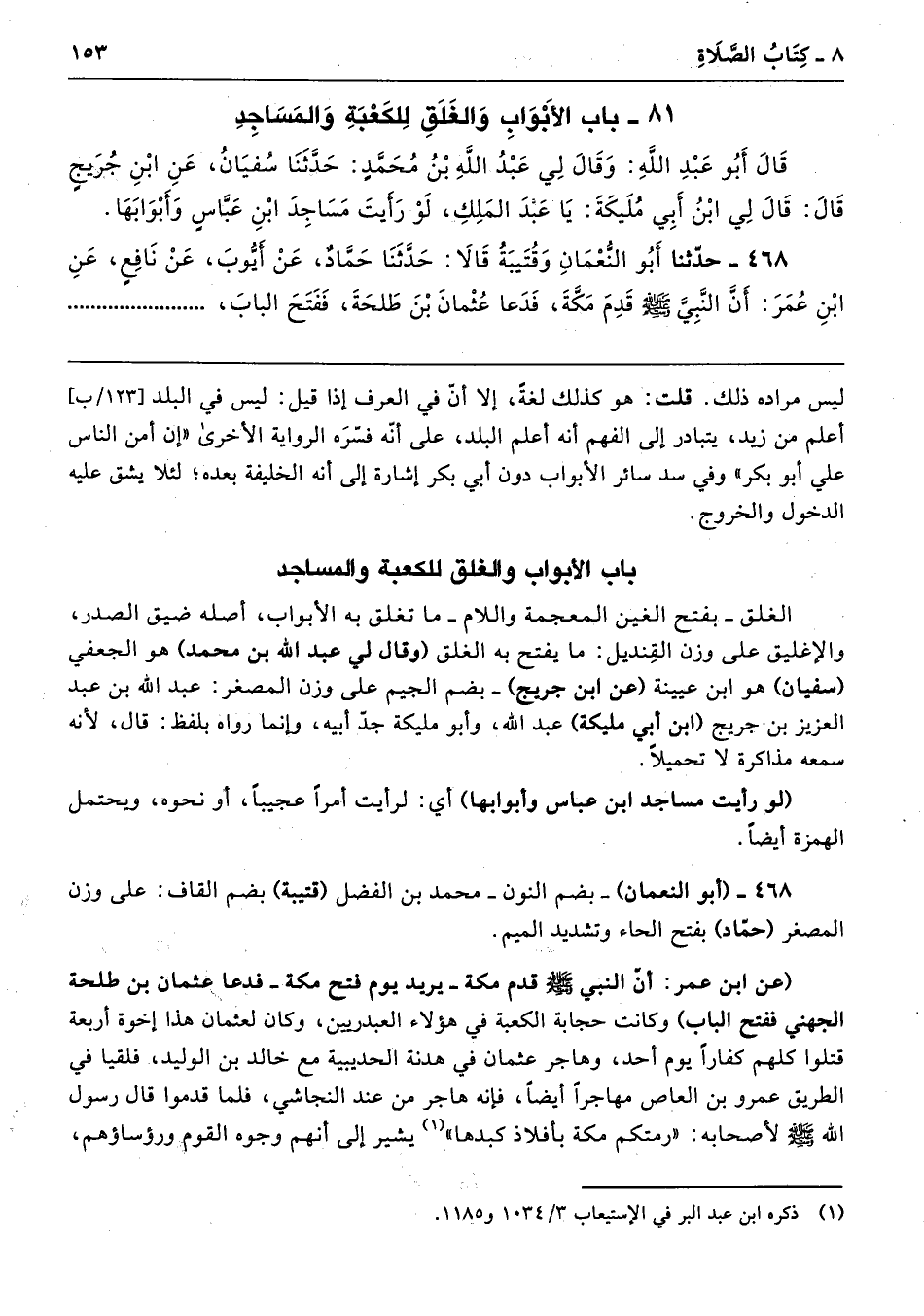 468 - حَدَّثَنَا أَبُو النُّعْمَانِ وَقُتَيْبَةُ قَالاَ حَدَّثَنَا حَمَّادٌ عَنْ أَيُّوبَ عَنْ نَافِعٍ عَنِ ابْنِ عُمَرَ أَنَّ النَّبِىَّ - صلى الله عليه وسلم - قَدِمَ مَكَّةَ، فَدَعَا عُثْمَانَ بْنَ طَلْحَةَ، فَفَتَحَ الْبَابَ،
