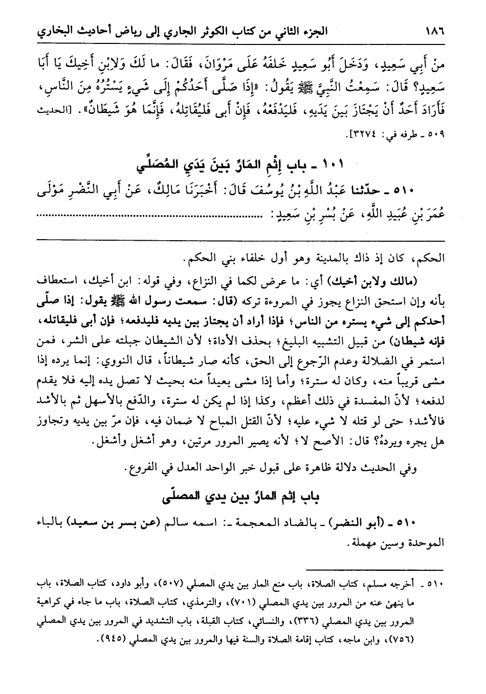 باب إثم المارِّ بين يدي المصلّى