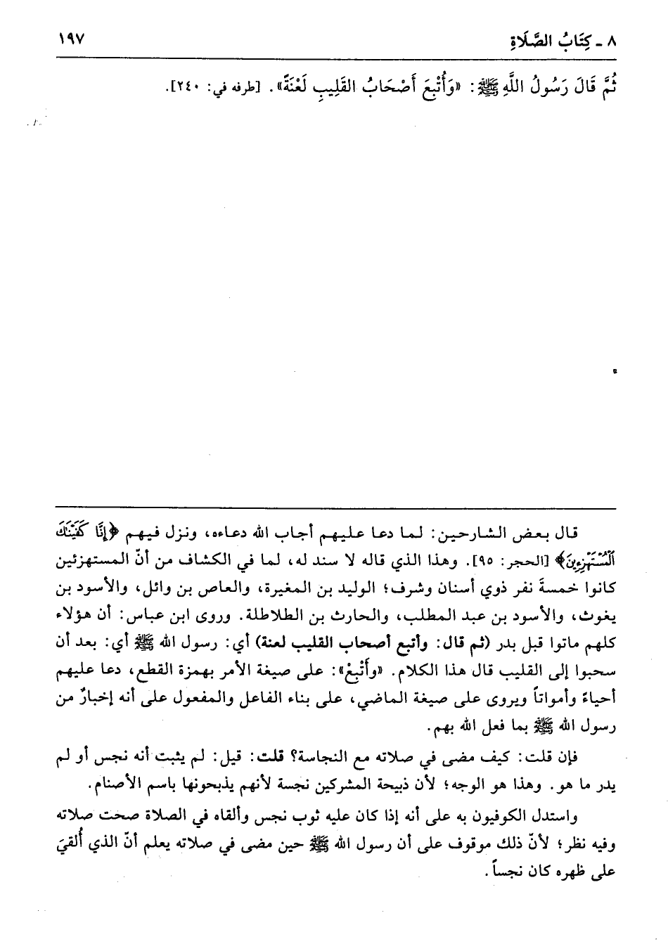 ثُمَّ قَالَ رَسُولُ اللَّهِ - صلى الله عليه وسلم - «وَأُتْبِعَ أَصْحَابُ الْقَلِيبِ لَعْنَةً». طرفه 240