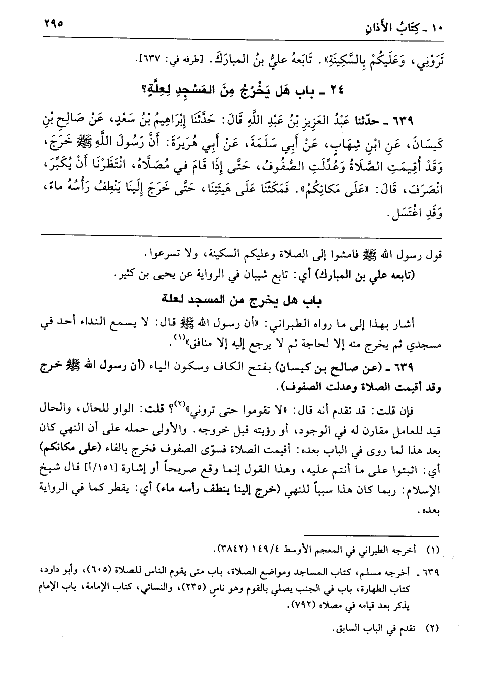 639 - (عن صالح بن كيسان) بفتح الكاف وسكون الياء (أن رسول الله - صلى الله عليه وسلم - خرج وقد أقيمت الصلاة وعدلت الصفوف).