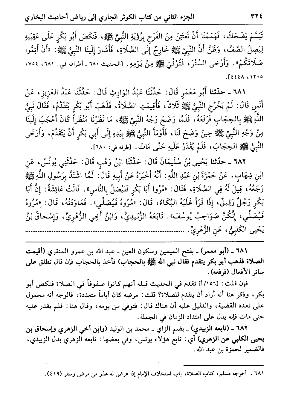 كتاب الكوثر الجاري إلى رياض أحاديث البخاري (اسم الجزء: 2)
