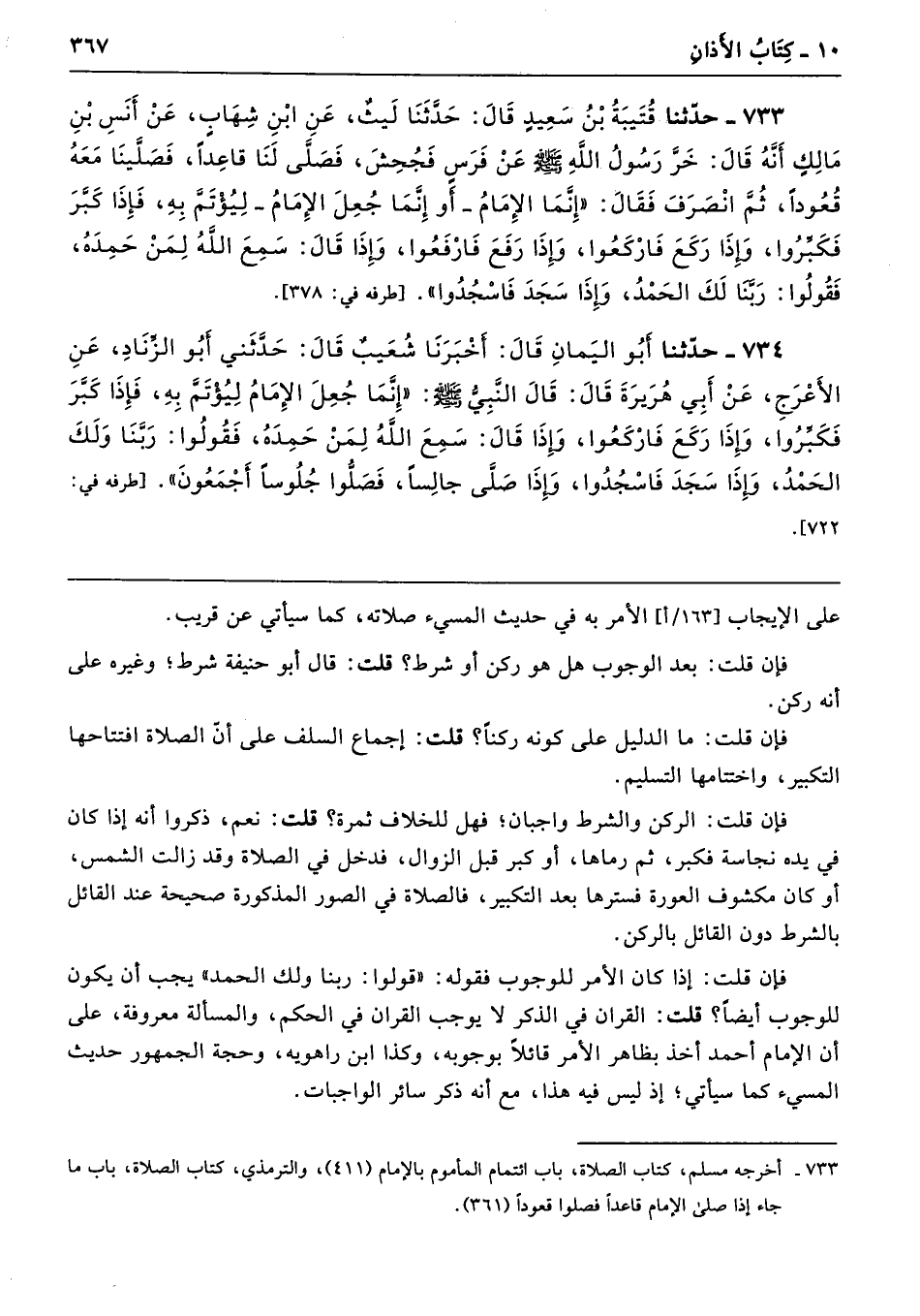 على الإيجاب الأمر به في حديث المسيء صلاته، كما سيأتي عن قريب.
