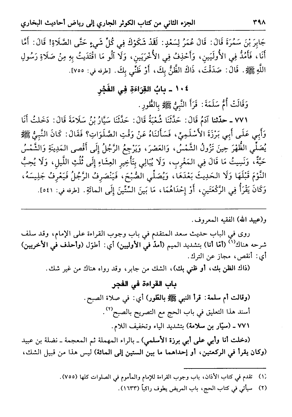 104 - باب الْقِرَاءَةِ فِي الْفَجْرِ