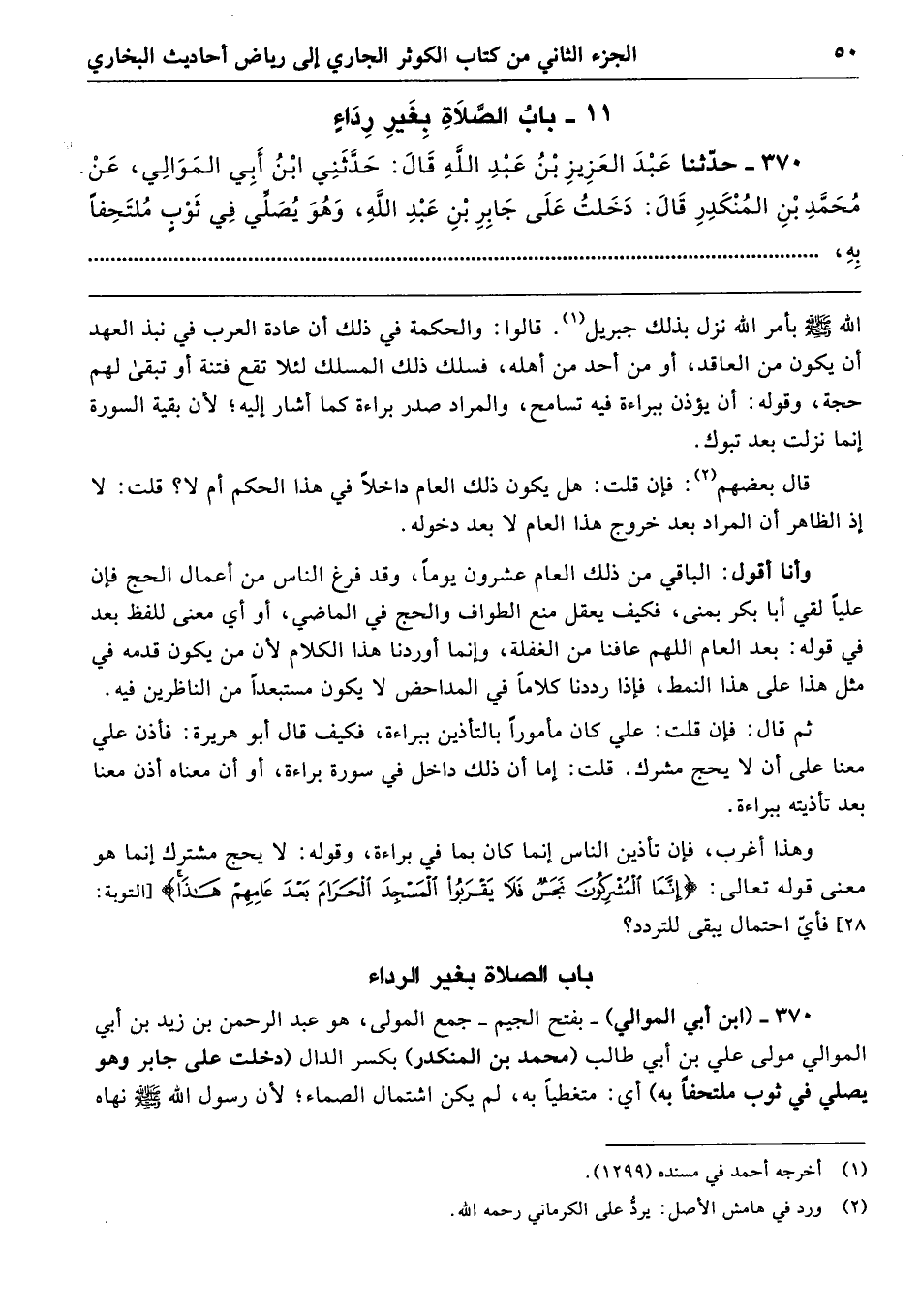 كتاب الكوثر الجاري إلى رياض أحاديث البخاري (اسم الجزء: 2)
