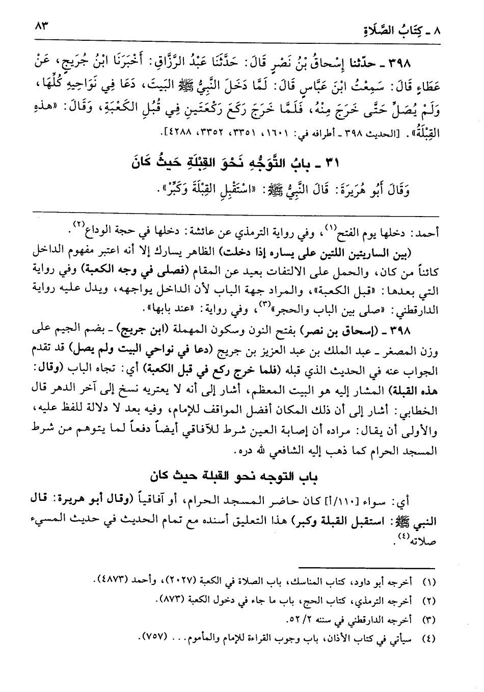 31 - باب التَّوَجُّهِ نَحْوَ الْقِبْلَةِ حَيْثُ كَانَ