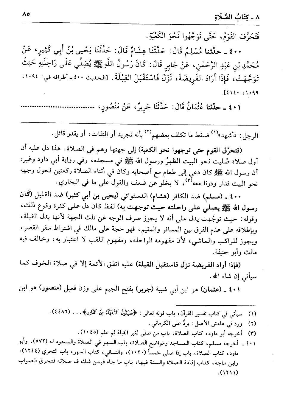 401 - (عثمان) هو ابن أبي شيبة (جرير) بفتح الجيم على وزن فعيل (منصور) هو ابن