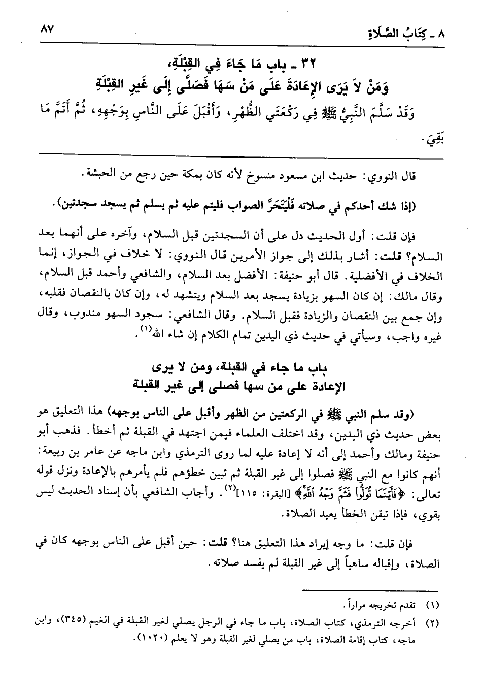 32 - باب مَا جَاءَ فِي الْقِبْلَةِ، وَمَنْ لاَ يَرَى الإِعَادَةَ عَلَى مَنْ سَهَا فَصَلَّى إِلَى غَيْرِ الْقِبْلَةِ