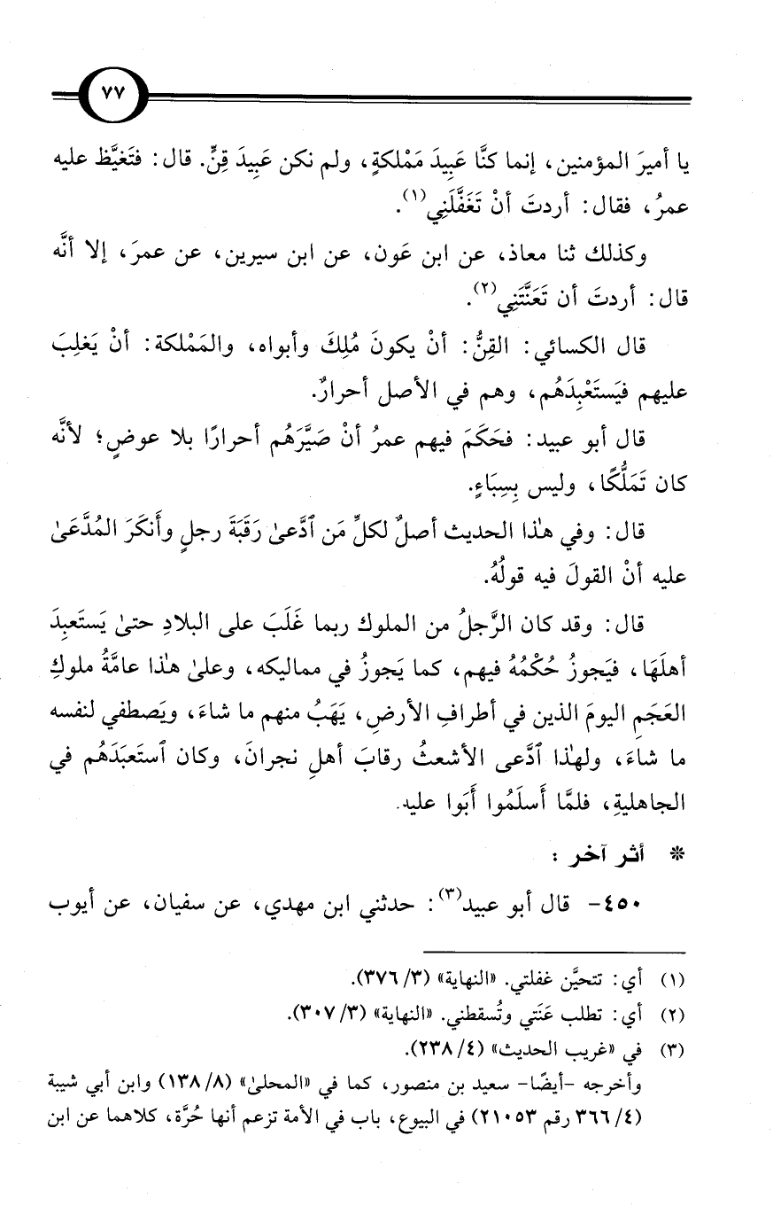 (450) قال أبو عبيد (¬3): حدثني ابن مهدي، عن سفيان، عن أيوب