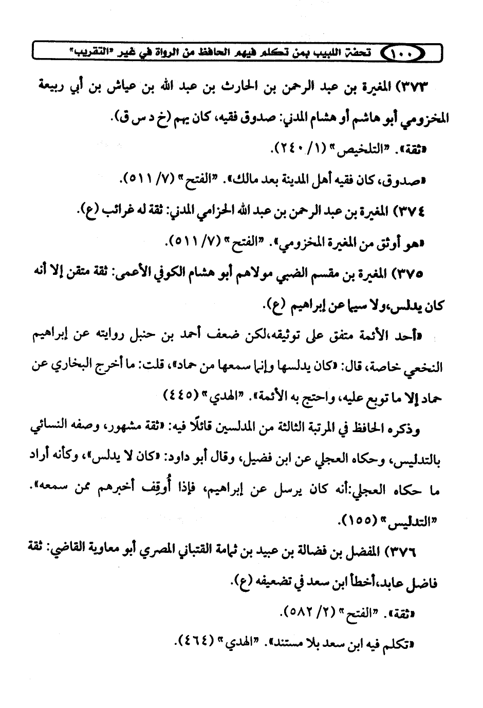 كتاب تحفة اللبيب بمن تكلم فيهم الحافظ ابن حجر من الرواة في غير «التقريب» (اسم الجزء: 2)