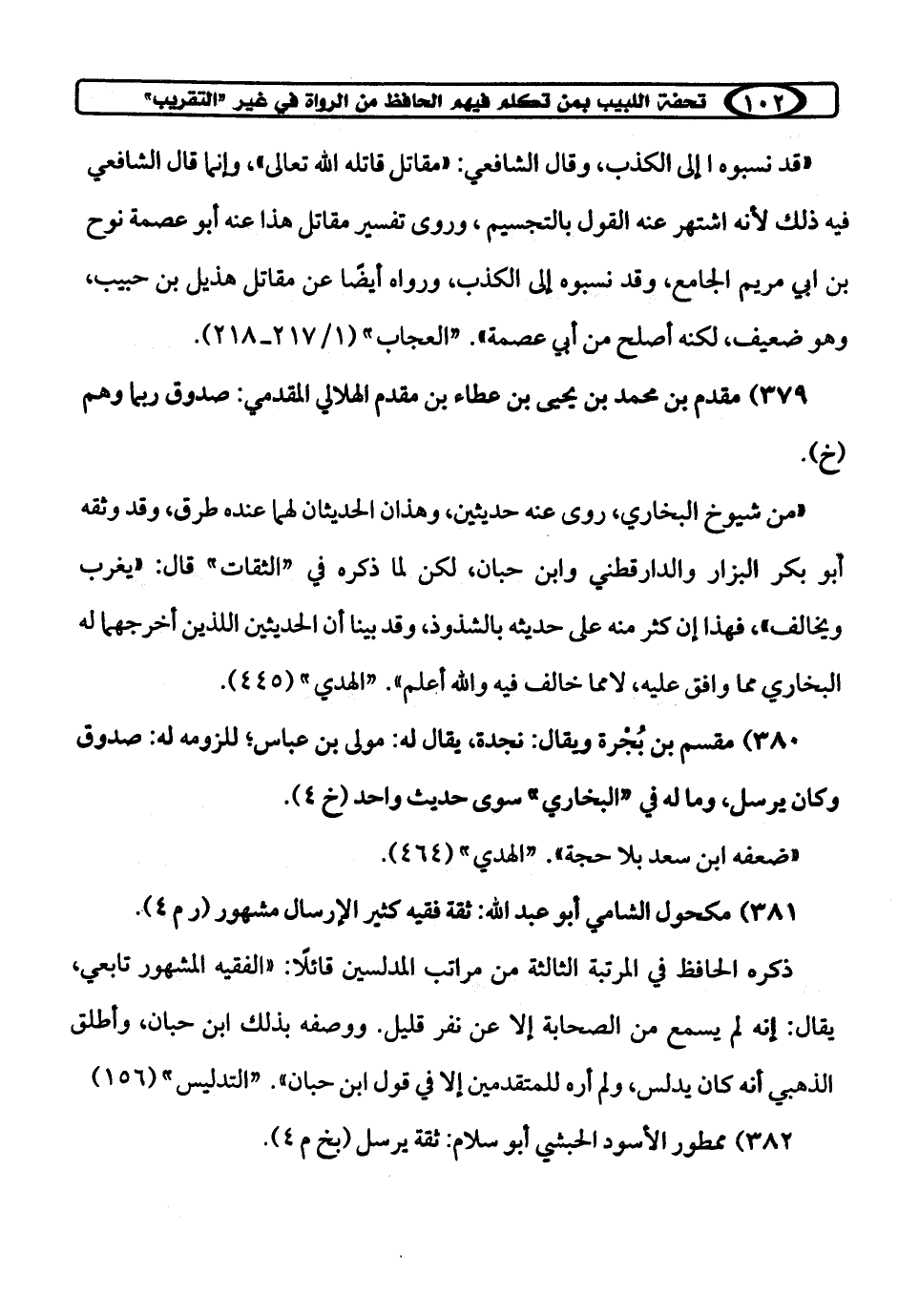 كتاب تحفة اللبيب بمن تكلم فيهم الحافظ ابن حجر من الرواة في غير «التقريب» (اسم الجزء: 2)