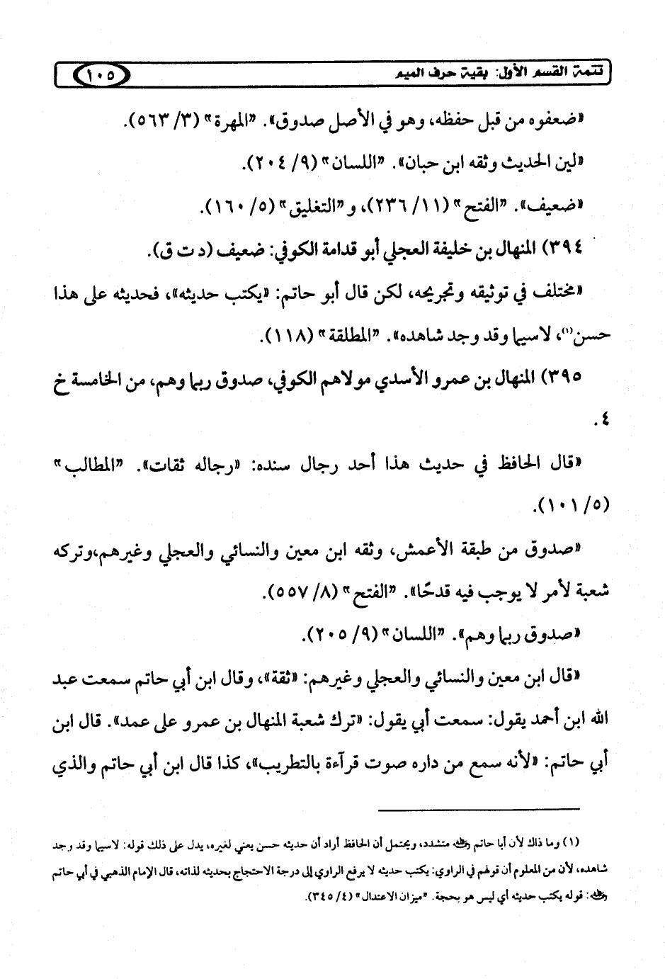 395) المنهال بن عمرو الأسدي مولاهم الكوفي: صدوق ربما وهم، من الخامسة خ 4.