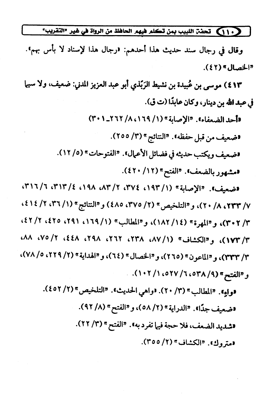"أحد الضعفاء". "الإصابة" (1/ 169، 8/ 262 - 301)