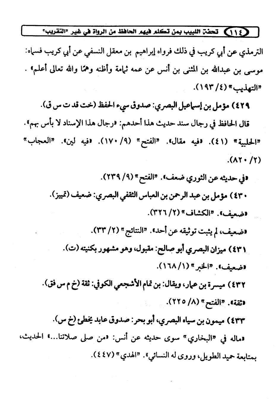 429) مؤمل بن إسماعيل البصري: صدوق سيء الحفظ (خت قد ت س ق).
