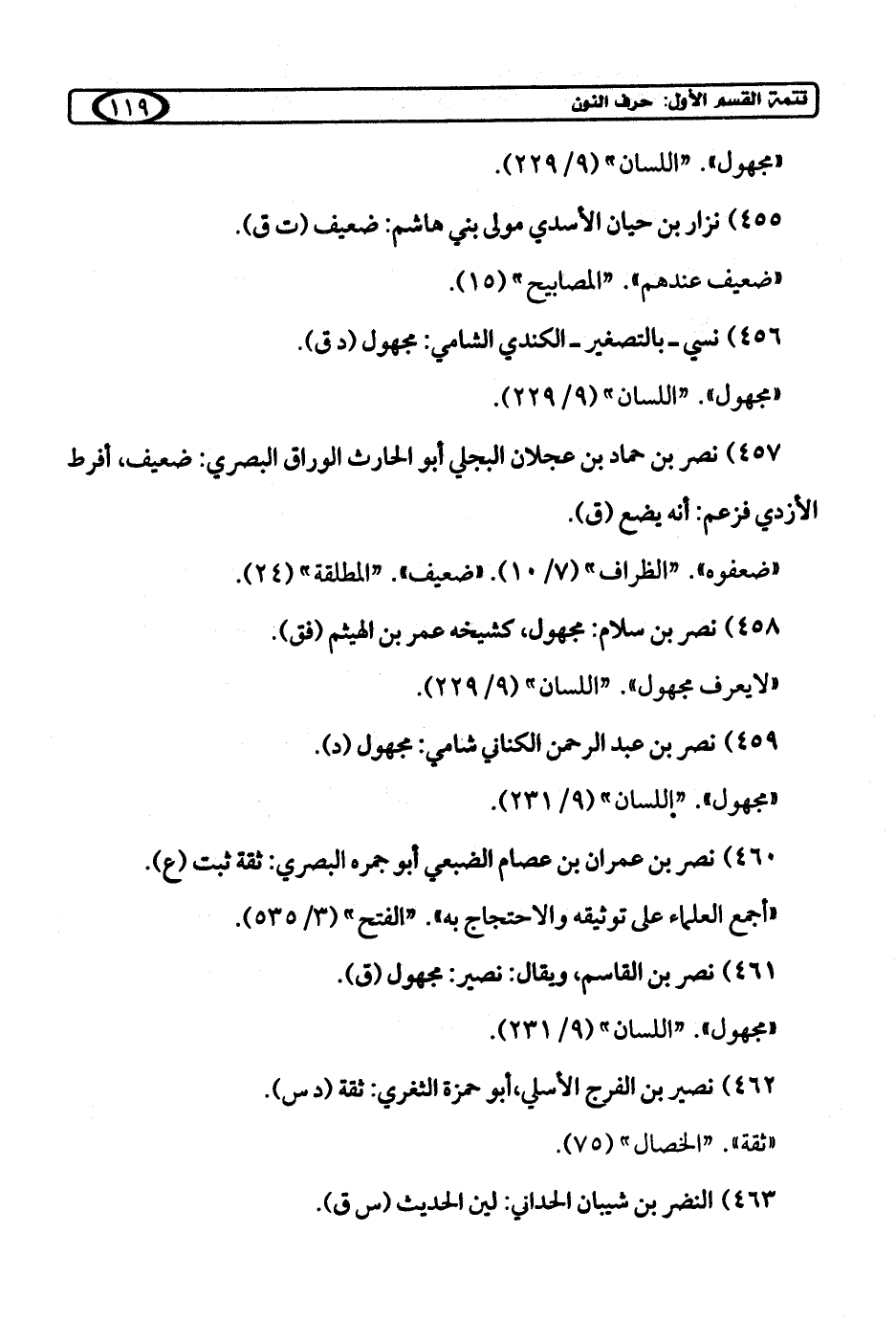 460) نصر بن عمران بن عصام الضبعي أبو جمره البصري: ثقة ثبت (ع).