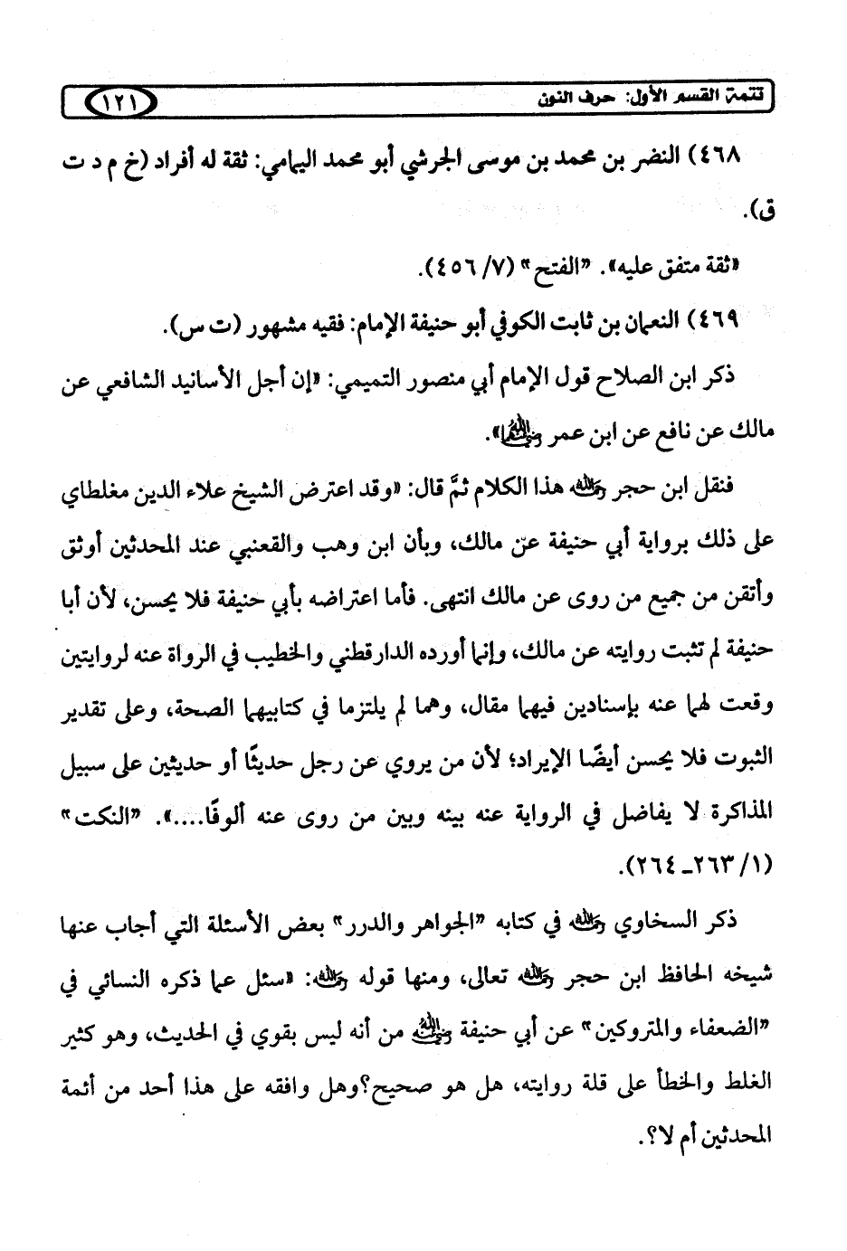469) النعمان بن ثابت الكوفي أبو حنيفة الإمام: فقيه مشهور (ت س).