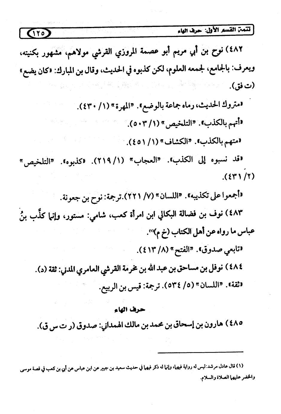 "أجمعوا على تكذيبه". "اللسان" (7/ 221). ترجمة: نوح بن جعونة.