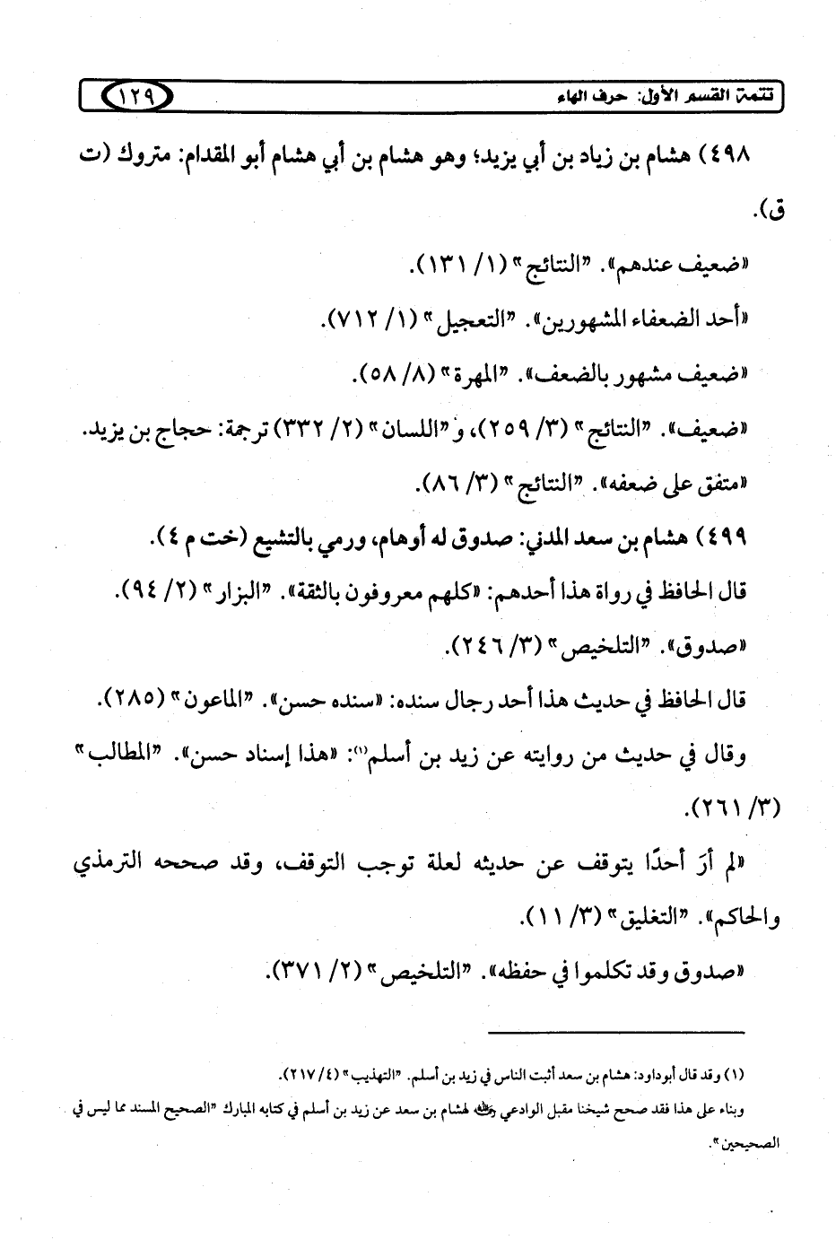 499) هشام بن سعد المدني: صدوق له أوهام، ورمي بالتشيع (خت م 4).