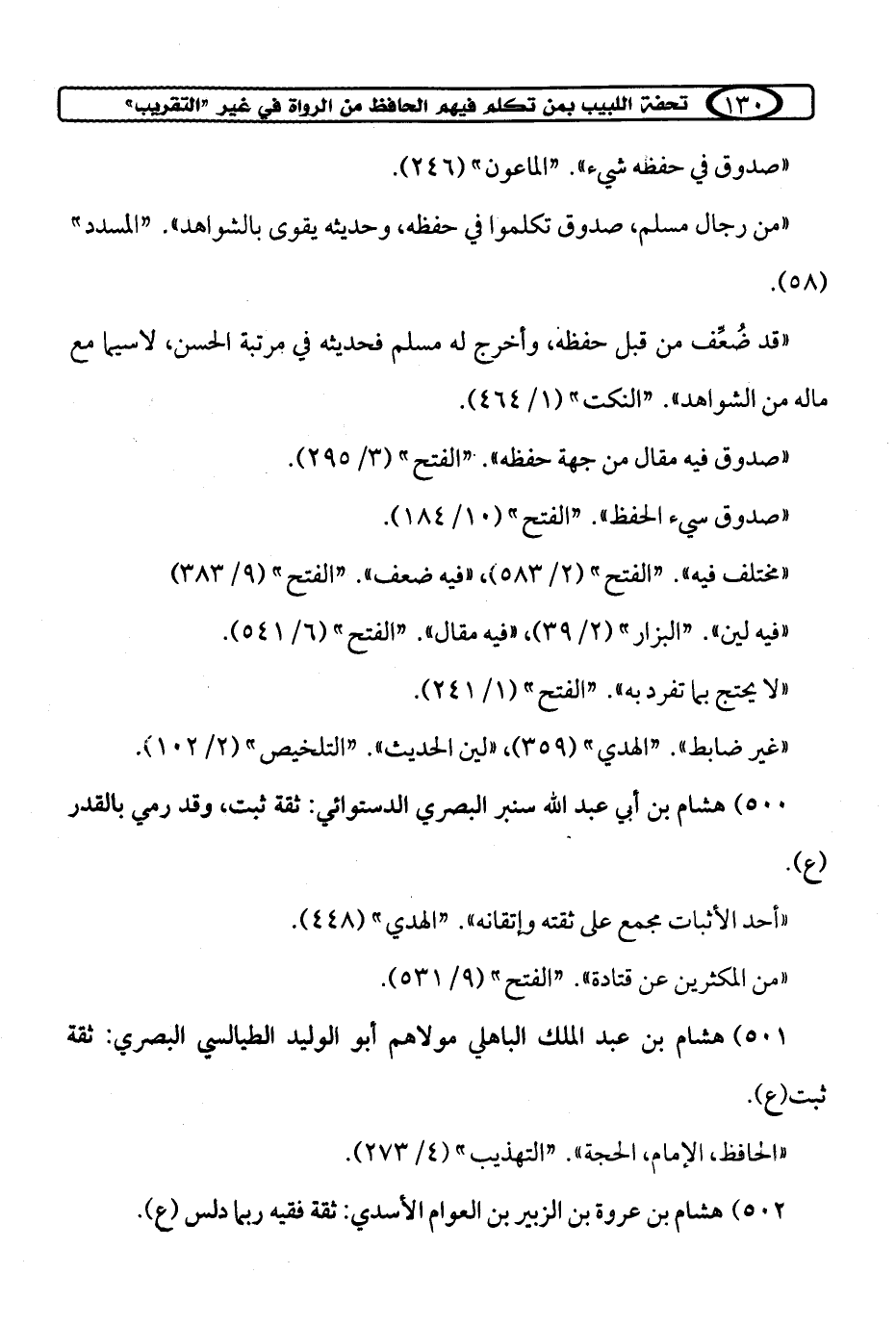501) هشام بن عبد الملك الباهلي مولاهم أبو الوليد الطيالسي البصري: ثقة ثبت (ع).
