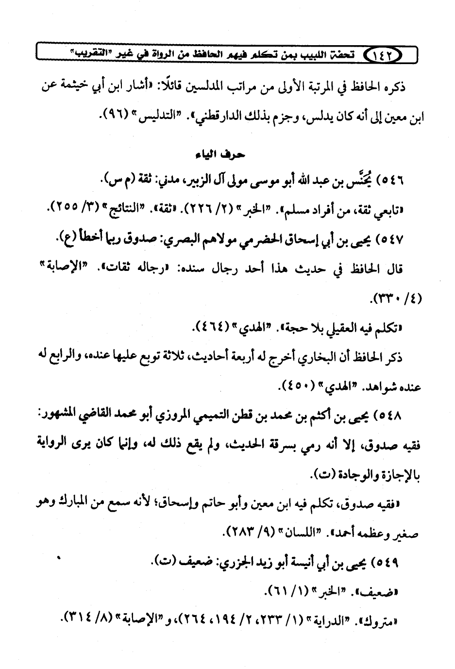 كتاب تحفة اللبيب بمن تكلم فيهم الحافظ ابن حجر من الرواة في غير «التقريب» (اسم الجزء: 2)