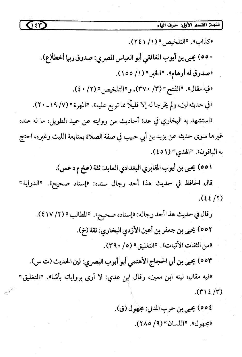 551) يحيى بن أيوب المقابري البغدادي العابد: ثقة (عخ م د عس).