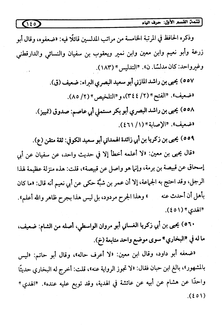 559) يحيى بن زكريا بن أبي زائدة الهمداني أبو سعيد الكوفي: ثقة متقن (ع).