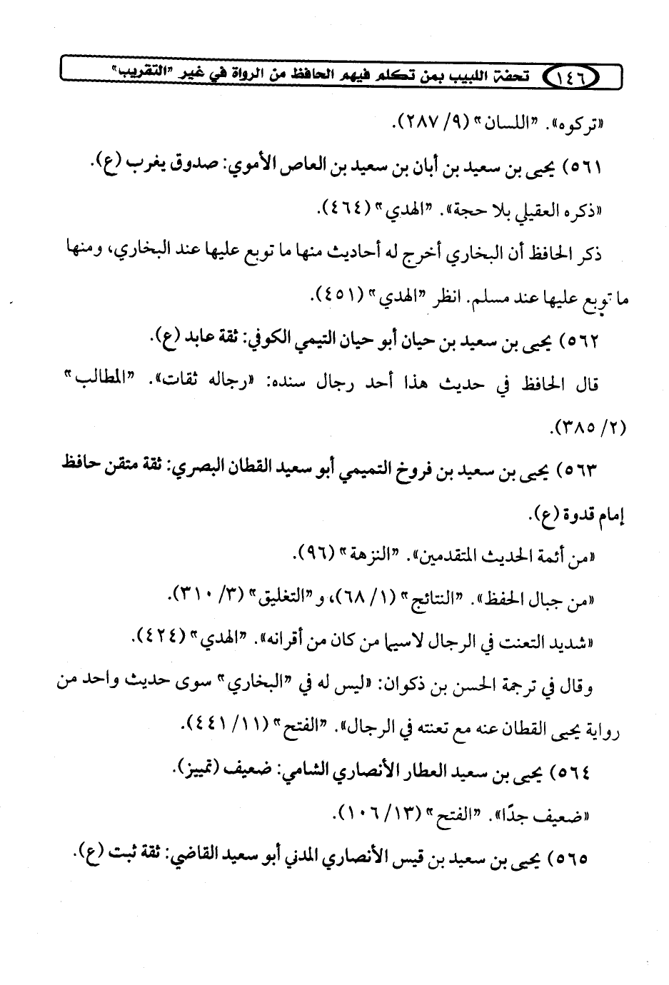561) يحيى بن سعيد بن أبان بن سعيد بن العاص الأموي: صدوق يغرب (ع).