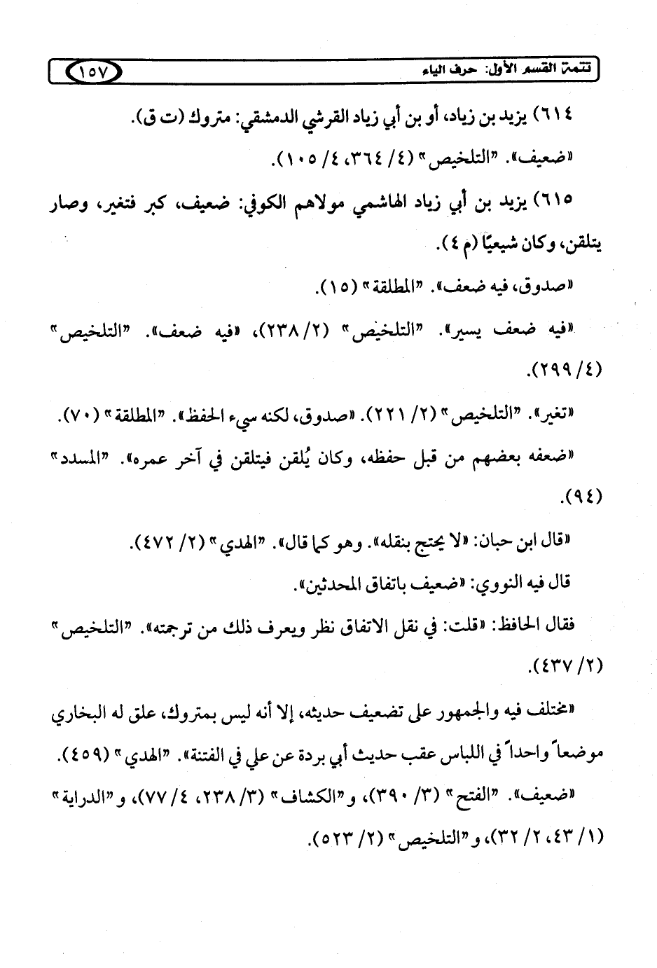 615) يزيد بن أبي زياد الهاشمي مولاهم الكوفي: ضعيف، كبر فتغير، وصار يتلقن، وكان شيعيًا (م 4).
