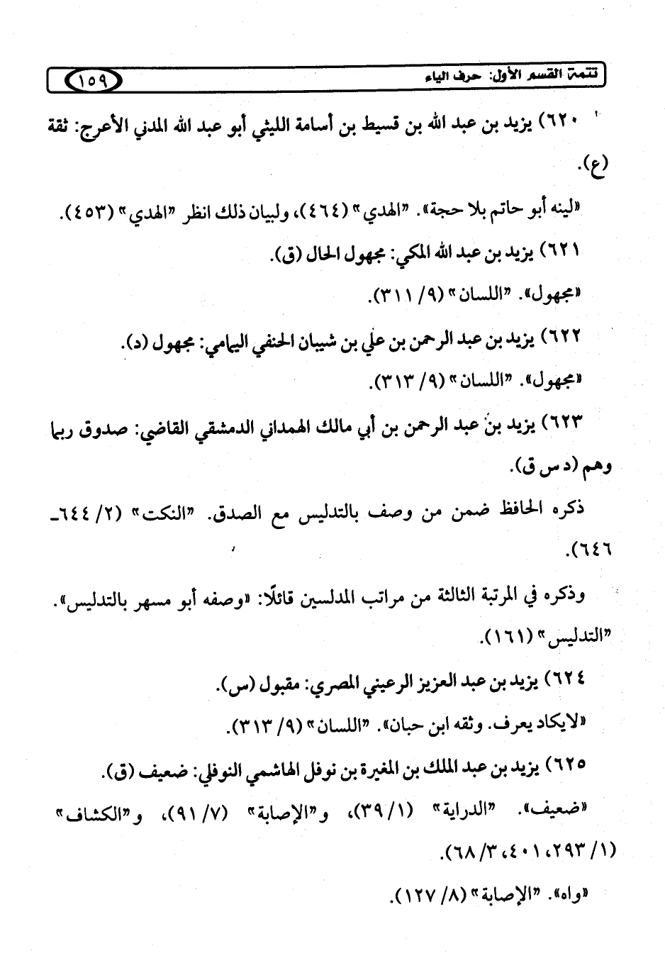620) يزيد بن عبد الله بن قسيط بن أسامة الليثي أبو عبد الله المدني الأعرج: ثقة (ع).