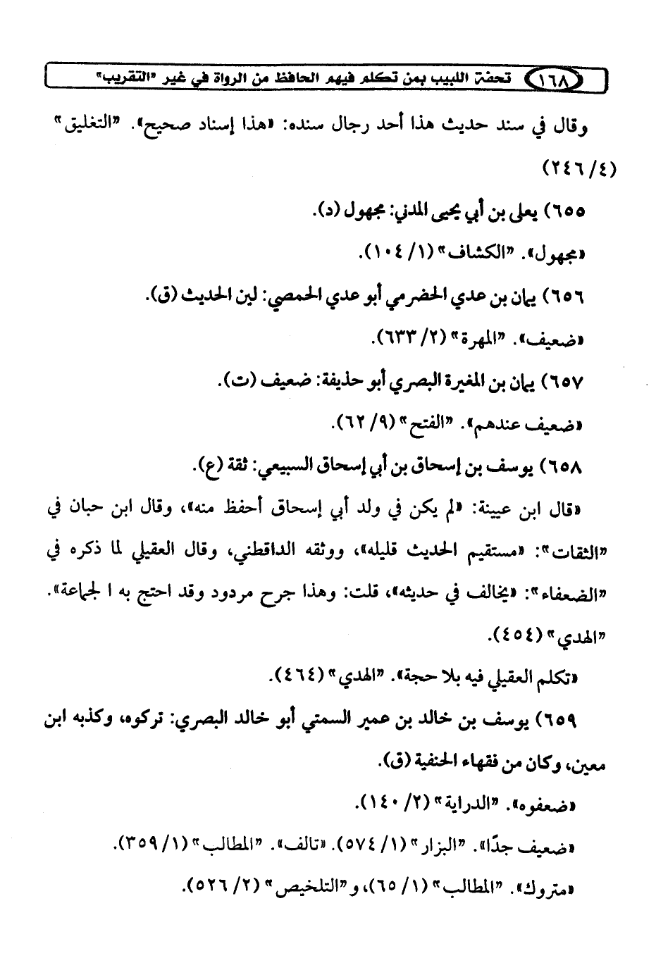 "تكلم العقيلي فيه بلا حجة". "الهدي" (464).