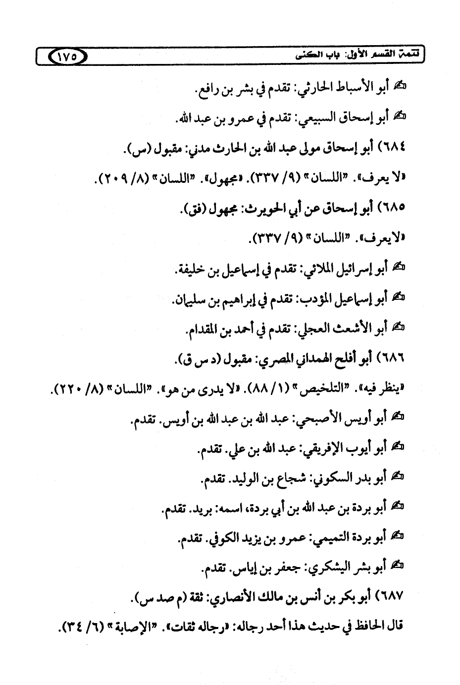 "ينظر فيه". "التلخيص" (1/ 88). "لا يدرى من هو". "اللسان" (8/ 220).