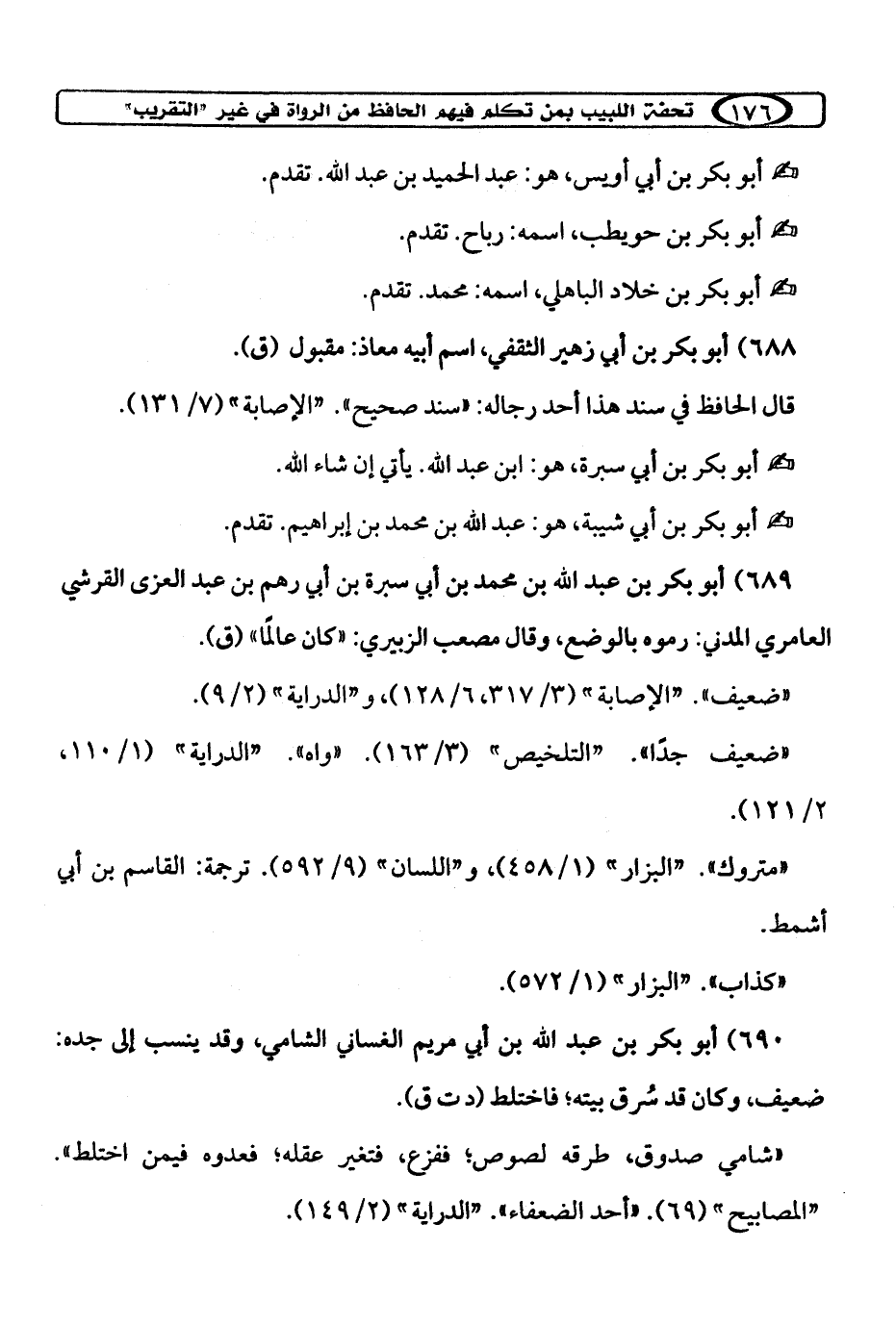 690) أبو بكر بن عبد الله بن أبي مريم الغساني الشامي، وقد ينسب إلى جده: ضعيف، وكان قد سُرق بيته؛ فاختلط (د ت ق).
