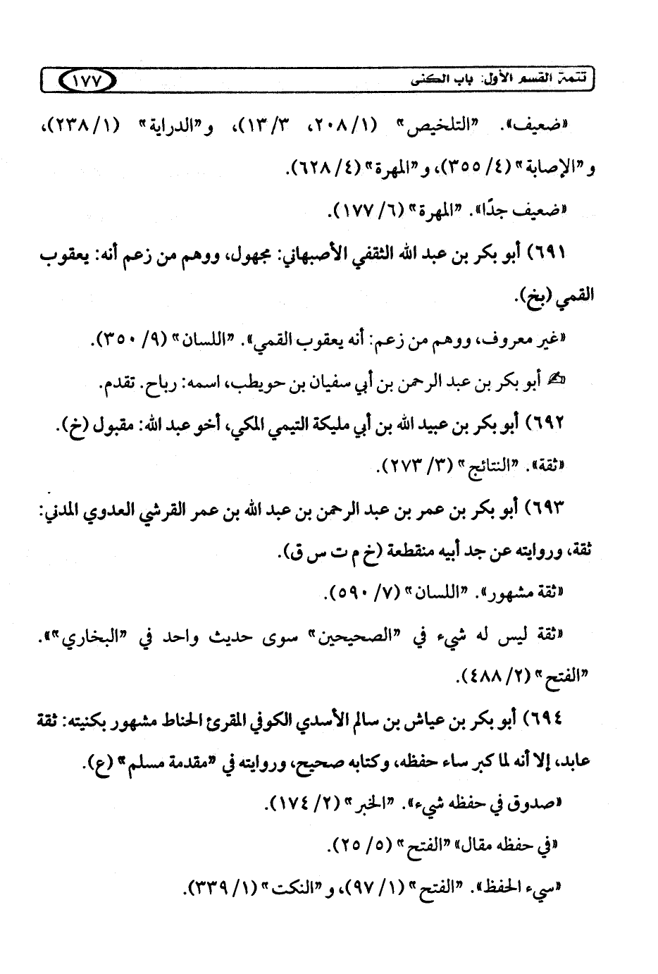 691) أبو بكر بن عبد الله الثقفي الأصبهاني: مجهول، ووهم من زعم أنه: يعقوب القمي (بخ).