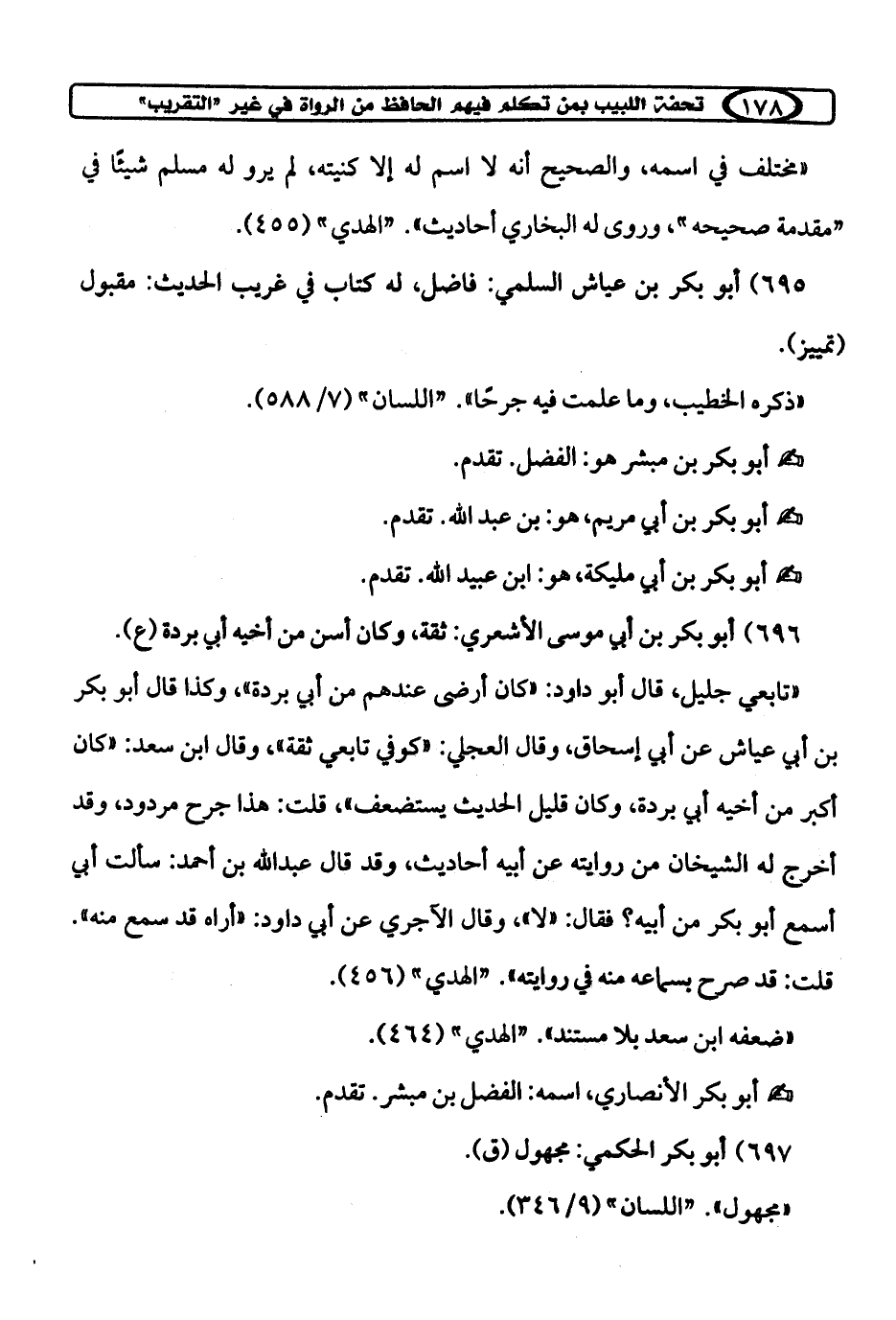 695) أبو بكر بن عياش السلمي: فاضل، له كتاب في غريب الحديث: مقبول