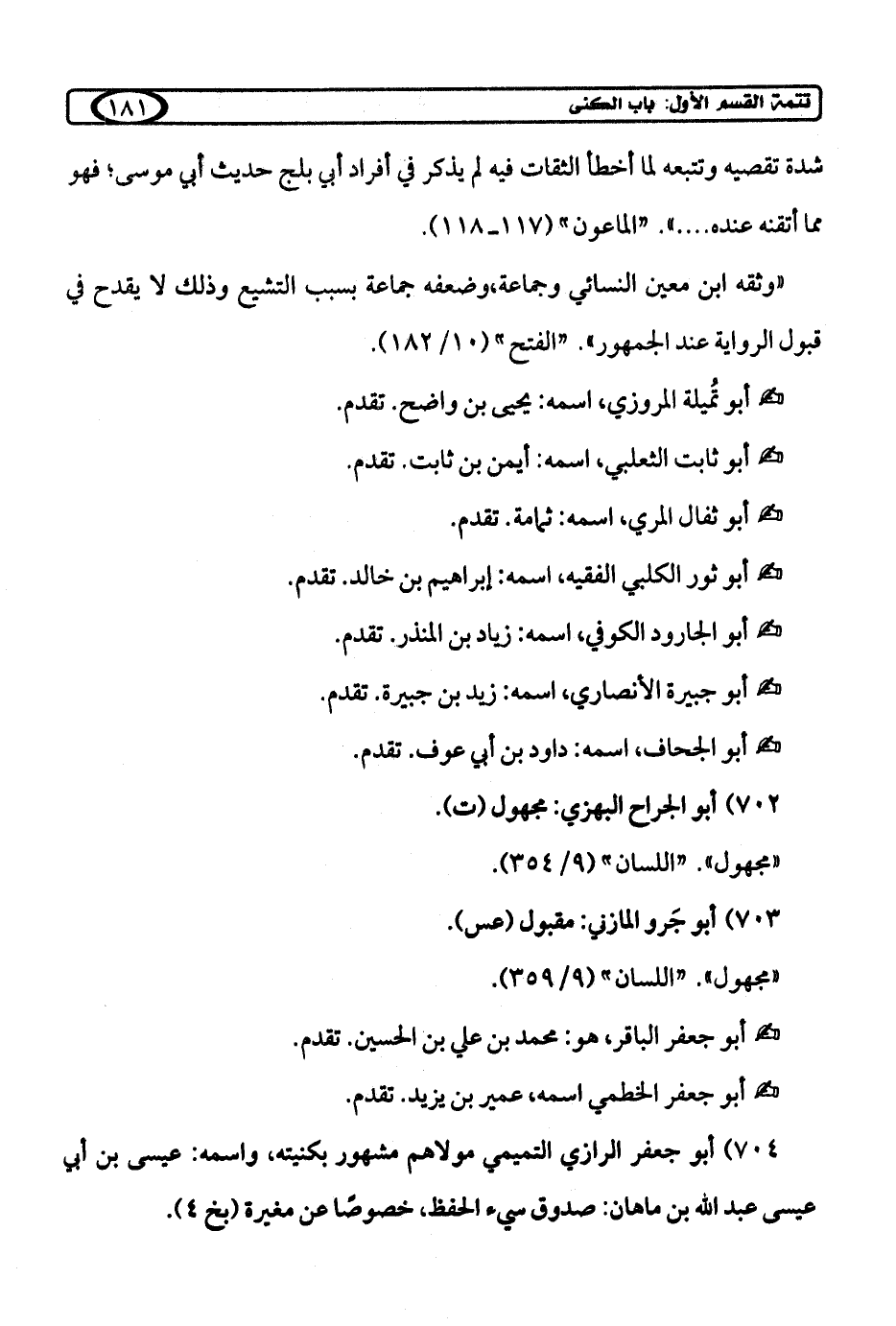 704) أبو جعفر الرازي التميمي مولاهم مشهور بكنيته، واسمه: عيسى بن أبي عيسى عبد الله بن ماهان: صدوق سيء الحفظ، خصوصًا عن مغيرة (بخ 4).