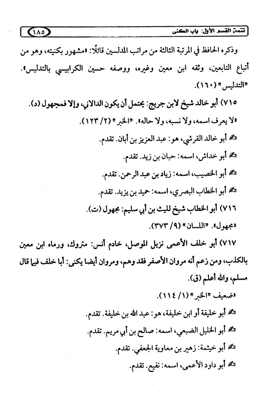 "لا يعرف اسمه، ولا نسبه، ولا حاله". "الخبر" (2/ 123).