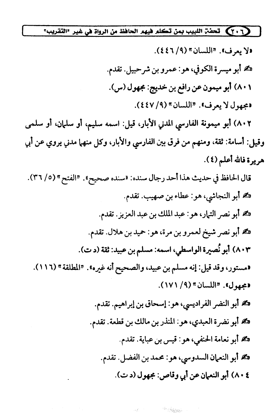 كتاب تحفة اللبيب بمن تكلم فيهم الحافظ ابن حجر من الرواة في غير «التقريب» (اسم الجزء: 2)