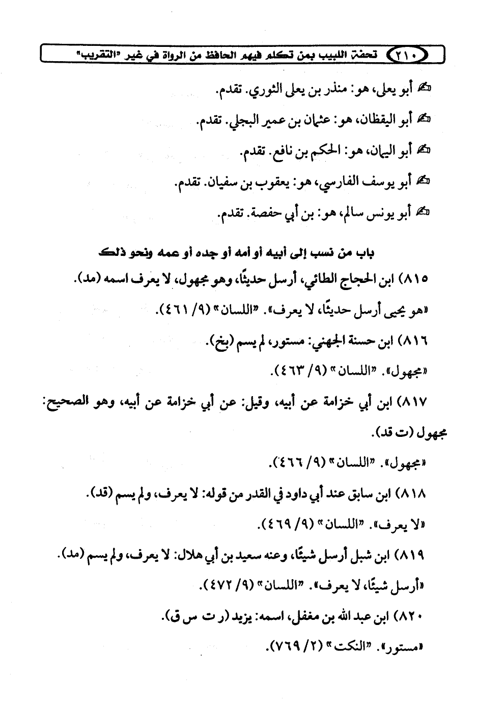 كتاب تحفة اللبيب بمن تكلم فيهم الحافظ ابن حجر من الرواة في غير «التقريب» (اسم الجزء: 2)