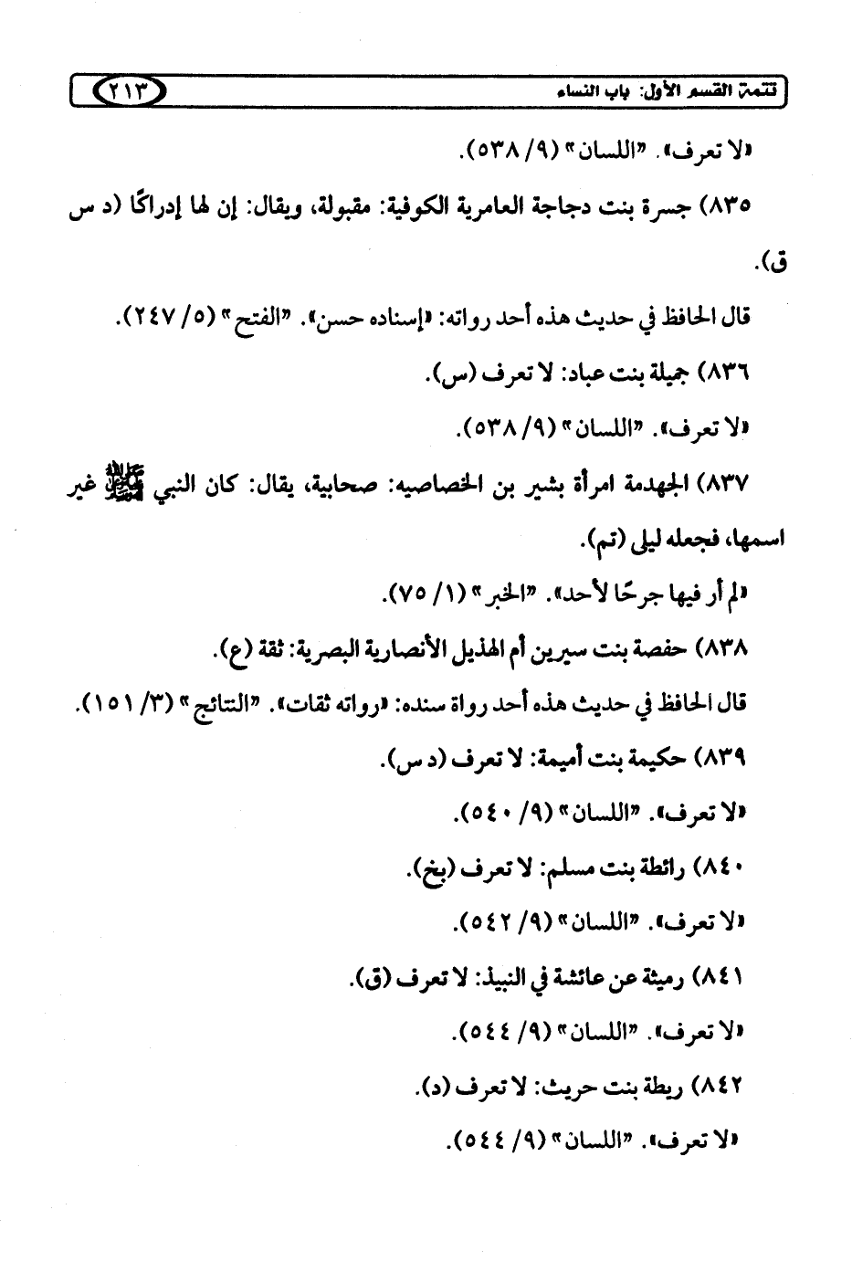 835) جسرة بنت دجاجة العامرية الكوفية: مقبولة، ويقال: إن لها إدراكًا (د س ق).