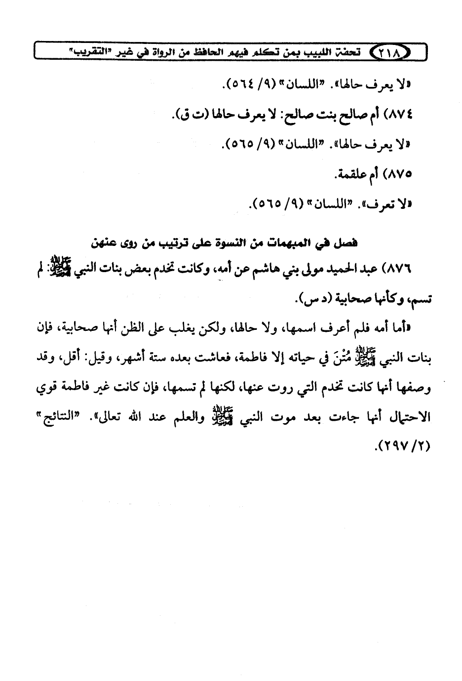فصل في المبهمات من النسوة على ترتيب من روى عنهن