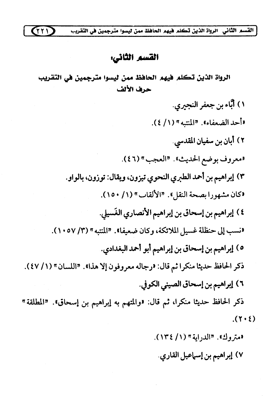 القسم الثاني: الرواة الذين تكلم فيهم الحافظ ممن ليسوا مترجمين في التقريب