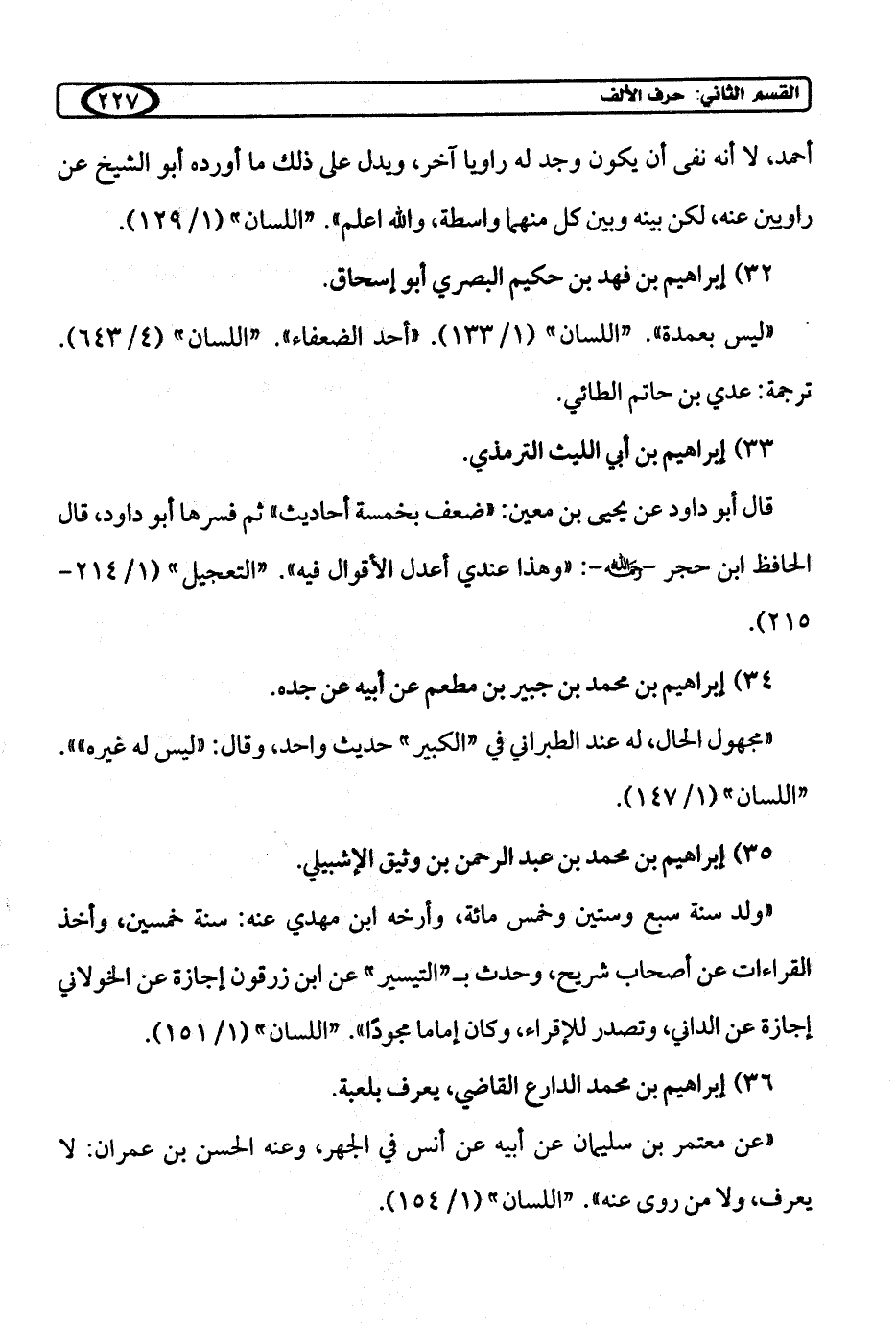 " ليس بعمدة". "اللسان" (1/ 133). "أحد الضعفاء". "اللسان" (4/ 643):