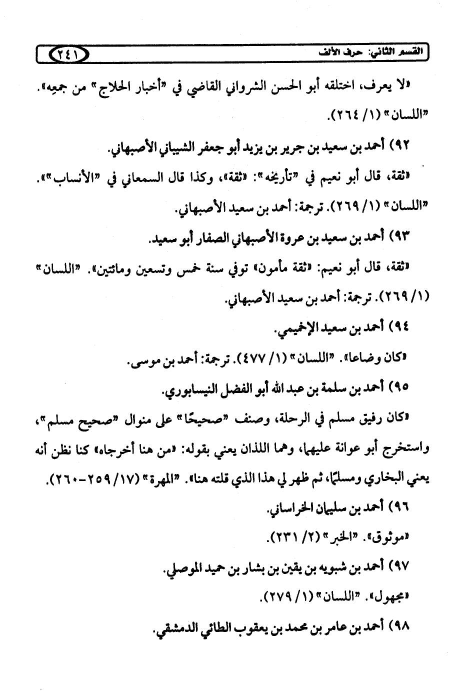 " ثقة، قال أبو نعيم: "ثقة مأمون" توفي سنة خمس وتسعين ومائتين". "اللسان" (1/ 269). ترجمة: أحمد بن سعيد الأصبهاني.