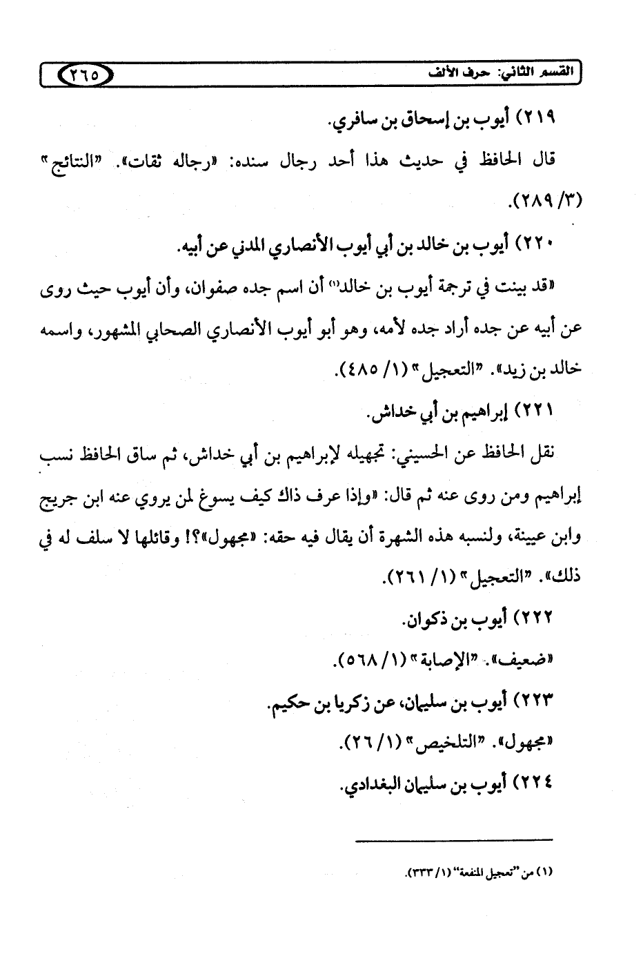 " قد بينت في ترجمة أيوب بن خالد (¬1) أن اسم جده صفوان، وأن أيوب حيث روى عن أبيه عن جده أراد جده لأمه، وهو أبو أيوب الأنصاري الصحابي المشهور، واسمه خالد بن زيد". "التعجيل" (1/ 485).