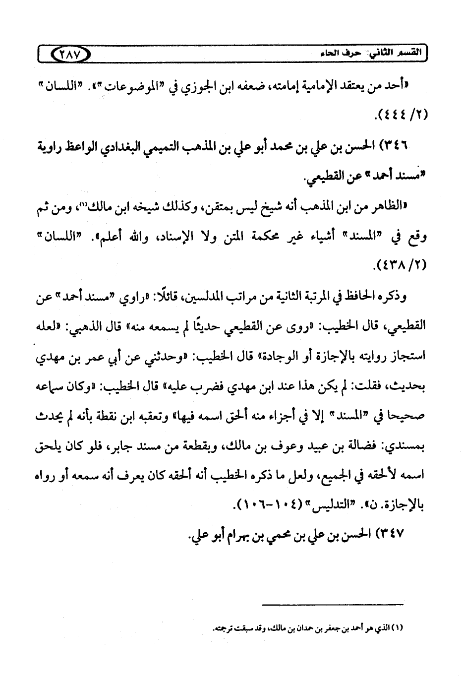 346) الحسن بن علي بن محمد أبو علي بن المذهب التميمي البغدادي الواعظ راوية "مسند أحمد" عن القطيعي: