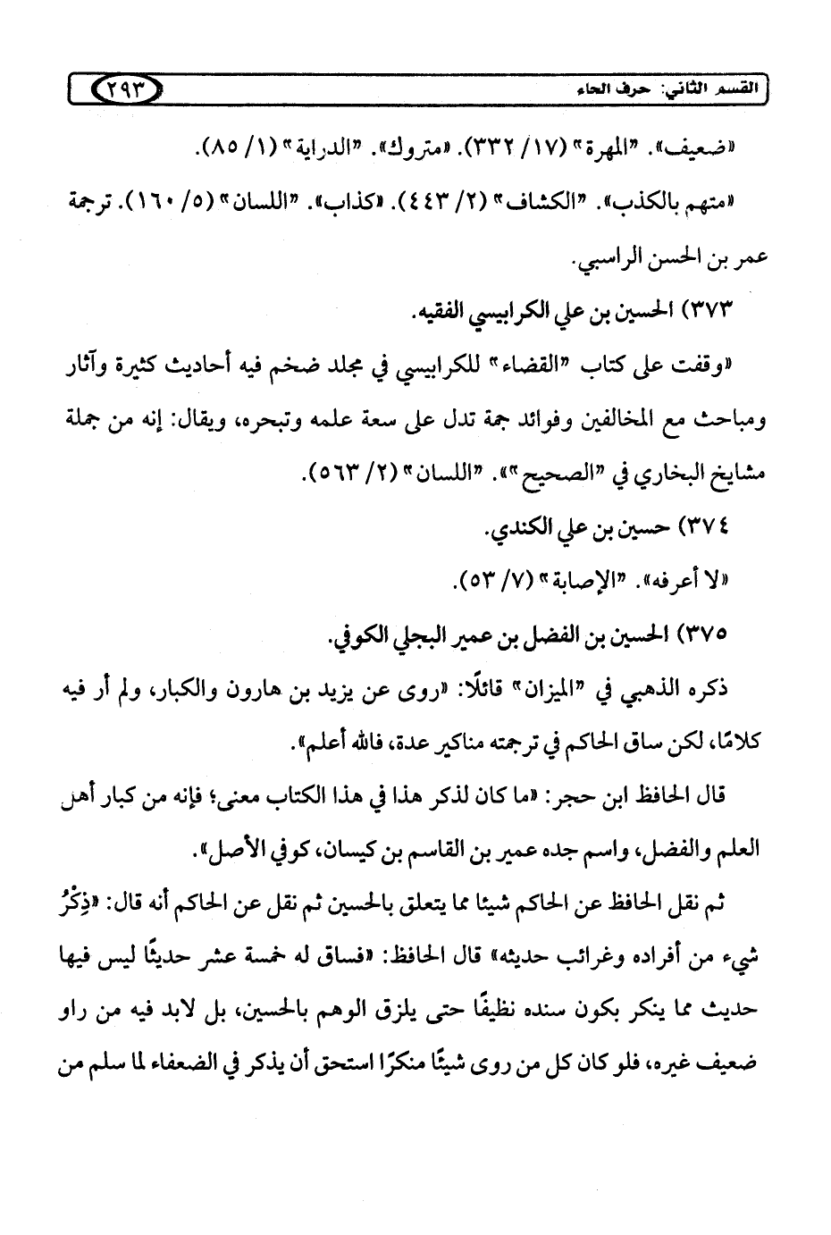 "متهم بالكذب". "الكشاف" (2/ 443). "كذاب". "اللسان" (5/ 160). ترجمة عمر بن الحسن الراسبي.