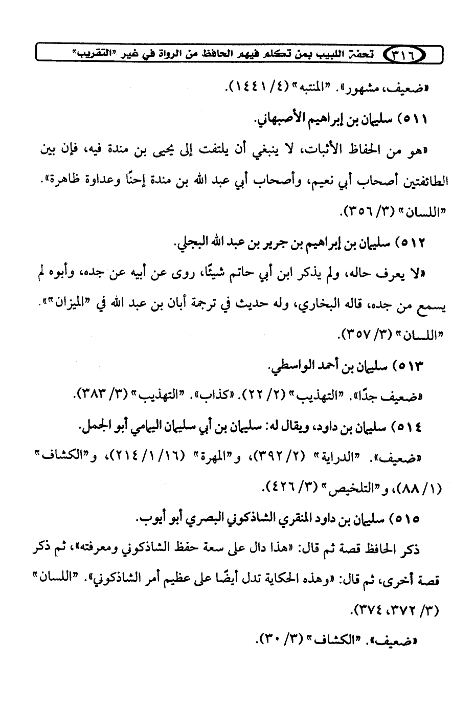 " ضعيف جدًا". "التهذيب" (2/ 22). "كذاب". "التهذيب" (3/ 383).
