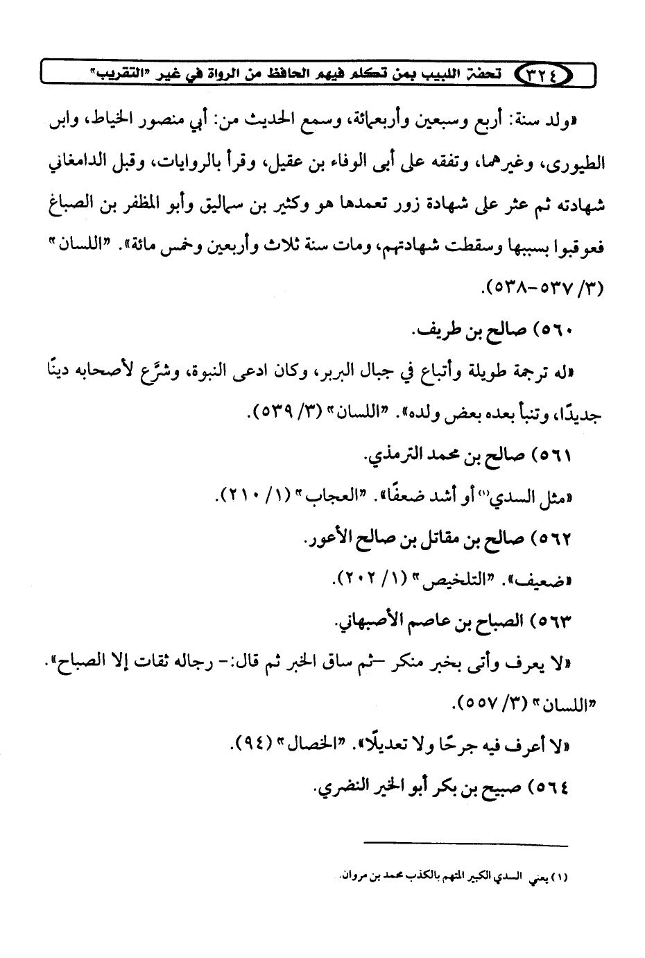 (¬1) يعني السدي الكبير اتهم بالكذب محمد بن مروان.